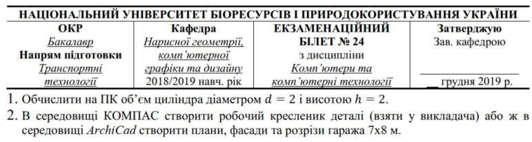 Екзаменаційна контрольна робота здійснюється у присутності викладача.