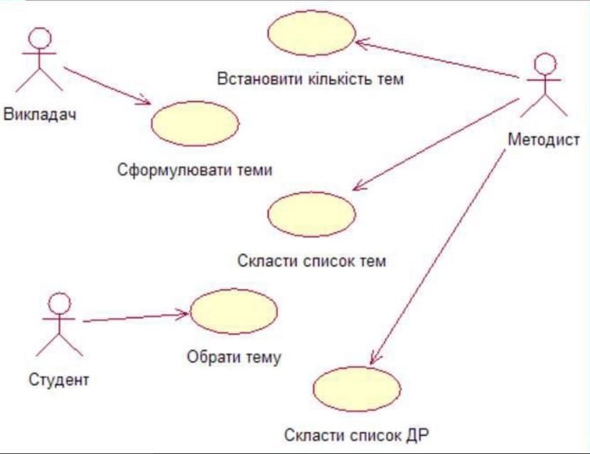 Варіант2: Система вибору тем дипломних проектів 1. Відкорегувати діаграму таким чином, щоб діаграма відображала систему вибору керівника та теми дипломного проекту |