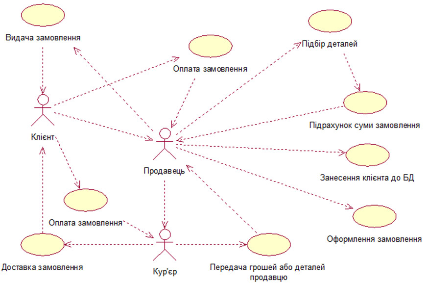 Варіант 1: Підтримка роботи магазину автозапчастин 1. Відкорегувати діаграму прецедентів таким чином, щоб вона відображала Web-систему магазину автозапчастин. |