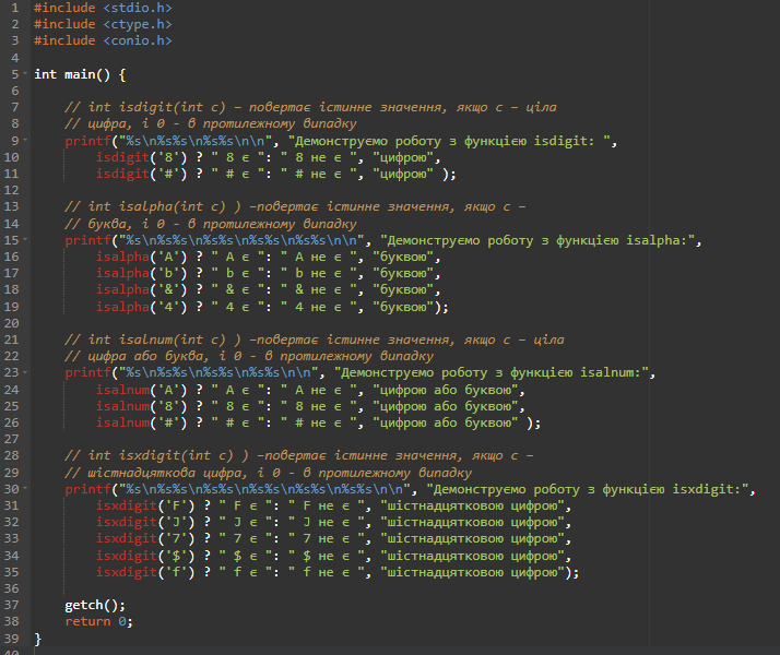 3. Продемонструвати роботу з функцiями для обробки символiв з бiблiотеки обробки символiв: <ctype.h>: