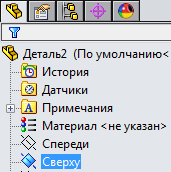 Виберіть в дереві побудови площину для побудови ескізу, клацнувши на пункті Зверху.