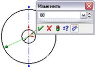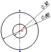 , Для чого, клацніть лівою клавішею миші на колі, задайте розташування розмірної лінії і написи, після чого, в діалоговому вікні задайте потрібну величину діаметра - 80 мм і другий окружності - 30 мм.