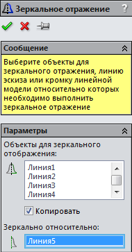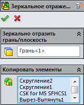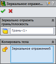 . Виділіть всі елементи, вкажіть площину відображення - грань моделі.