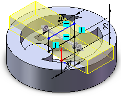 Виберіть верхню площину підстави як площину побудови ескізу. Виберіть команду Вставка-Елементи-Отвір-Под кріплення ..., або натисніть на кнопку