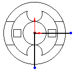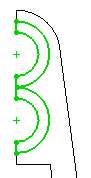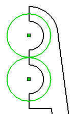 Виділіть дві більші дуги. За допомогою ручок, які з'явилися на кінцях дуг, попередньо видаливши взаємозв'язку Збіг і Проектування, перемістіть кінцеву точку дуги великого кола вправо (як на малюнку 2), тим самим, виключивши само перетинів контуру.