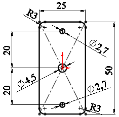 Створіть заокруглення, виділивши зазначені елементи, задайте радіус 3 мм.