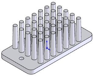 Видаліть 5 голок в центрі радіатора, вибравши розділ Пропустити екземпляри на панелі властивостей і на робочій області моделі вкажіть на рожеві точки тих примірників, які будувати не треба. Точки забарвляться в помаранчевий колір і фантом примірника масиву зникне: