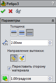 . Виберіть напрямок і товщину ребра 2 мм.