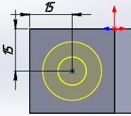 Створіть ескіз згідно рисунку. Для чого, виберіть команду побудови кола