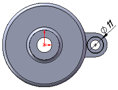 На верхній площині створеної на попередньому кроці лапки, створіть ескіз у вигляді кола діаметром 11 мм.