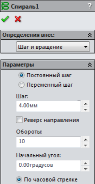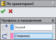 . Як профілю виберіть коло, в якості напрямку - спіраль.