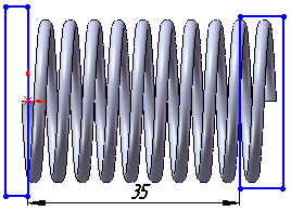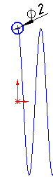 . Створіть ескіз у вигляді кола з прив'язкою до початку спіралі, діаметром 2 мм, при необхідності, призначте взаємозв'язок на центр кола і спіраль Точки пронзанія.