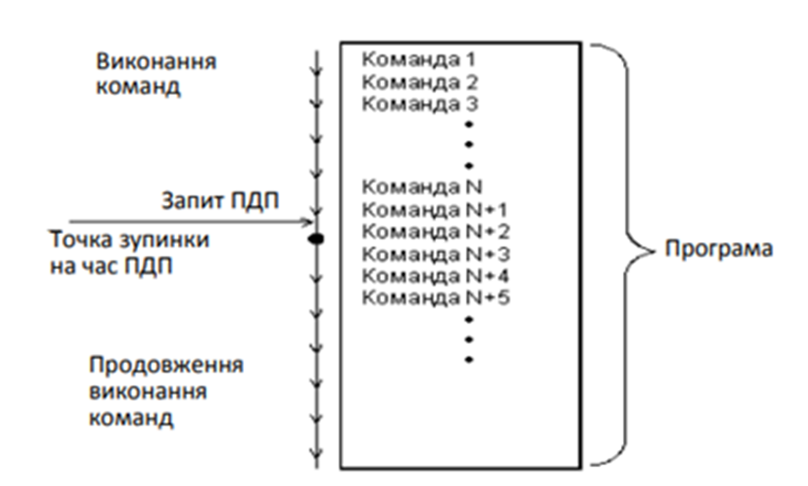 Операція ПДП зводиться до пересилання інформації з пристрою вводу/виводу в пам'ять або з пам'яті в пристрій вводу/виводу. Коли пересилання інформації буде завершено, процесор знову повертається до перерваної програми, продовжуючи її з того місця, де його перервали
