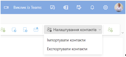 Використовуйте файл зі значеннями, розділеними комами (.csv), щоб імпортувати свої контакти в обліковий запис Outlook.com. У правій частині панелі інструментів сервісу Люди виберіть Налаштування контактів > Імпортувати контакти або Експортувати контакти.