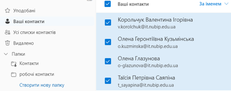 Створені контакти в сервісі Люди можна За іменем:
