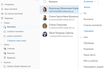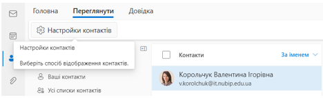 У вкладці Переглянути є доступна можливість відобразити контакти в порядку подання:
