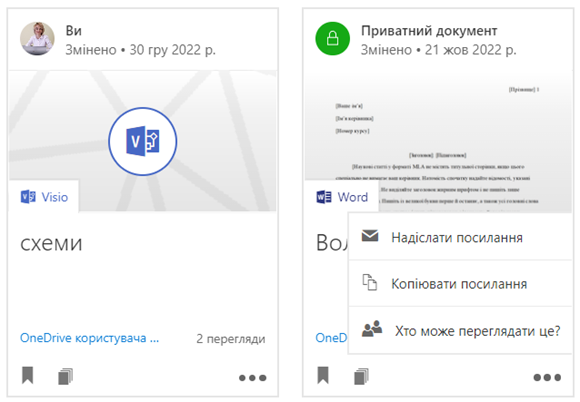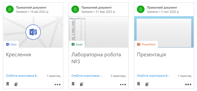 Власні (приватні) документи в Delve позначено піктограмою закритого замка та відповідним написом Приватний документ, а також дата його створення або останньої зміни.