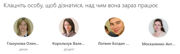 В сервісі Delve можна ознайомитись із профілями інших користувачів. Для цього необхідно натиснути на профіль користувача, щоб дізнатися, над чим кожен з них зараз працює.