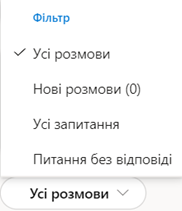 Для зручності перегляду дописів, користувачу доступна можливість їх фільтрації та сортування. Щоб відфільтрувати дописи, необхідно обрати Усі розмови та встановити необхідний фільтр для розмов. Для користувача доступний перегляд усіх розмов, нових розмов, усіх запитань або ж запитань без відповіді.