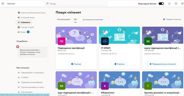 Якщо ж необхідна спільнота уже створена, користувачі можуть знайти її скориставшись категорією Спільноти на бічній панелі, обрати спільноту та натиснути Приєднатися до спільноти.
