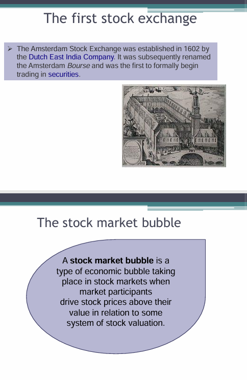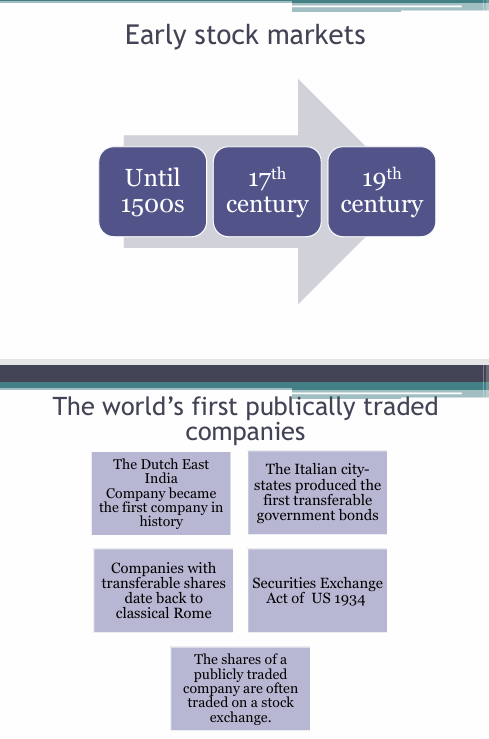 stock exchange activity has developed over many centuries in order to achieve the modern level of perfection inherent in today's international