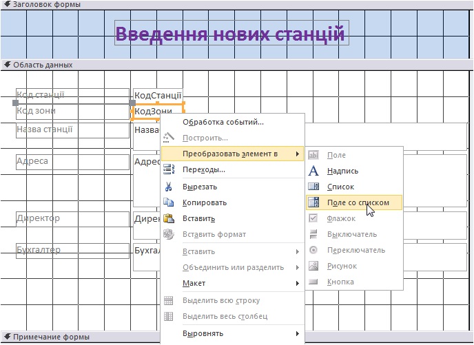 7. Побудова поля із списком