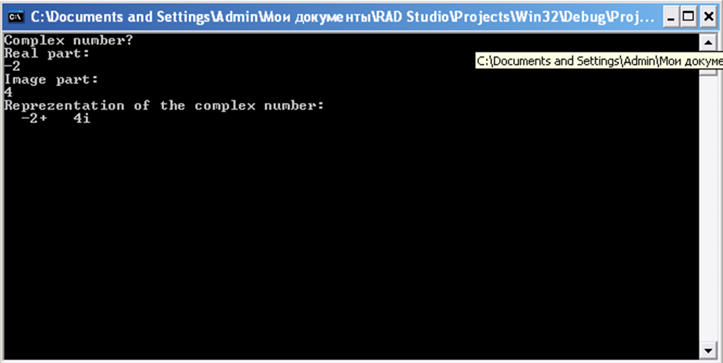 printf("Reprezentation of the complex number:\n");