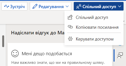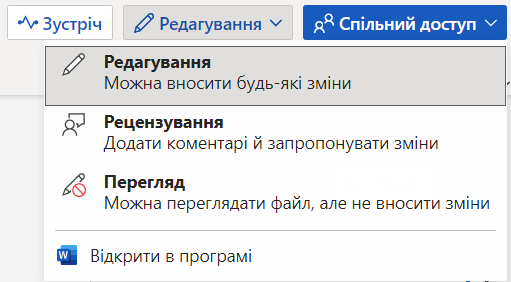 Для поширення документу та налаштування відповідно спільного доступу необхідно натиснути Спільний доступ.