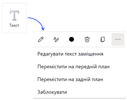 Додавши текст, користувачі, скориставшись панеллю текстових об’єктів, мають змогу його редагувати, форматувати, змінювати колір шрифту, копіювати, видаляти. Також користувачам доступне додаткове меню для зміни розташування даного об'єкту (переміщення на передній чи задній план), редагування тексту заміщення та його блокування від подальших змін.