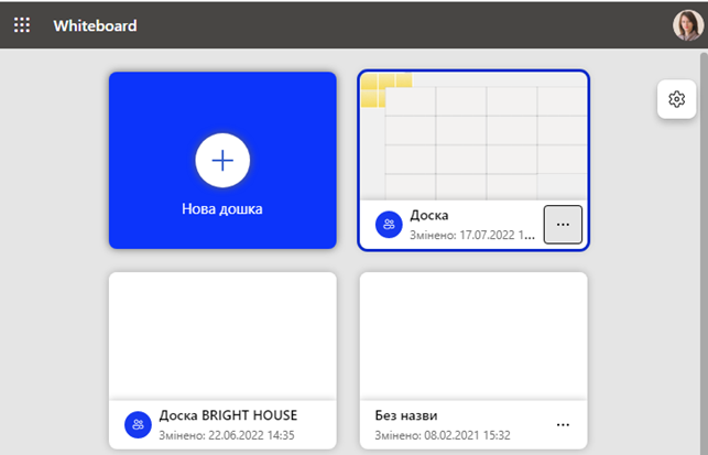 Для організації такого середовища, у сервісі необхідно натиснути Нова дошка або обрати одну із уже доступних.