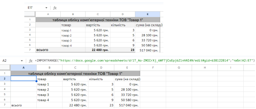 =IMPORTRANGE("ключ_аркуша", "діапазон")