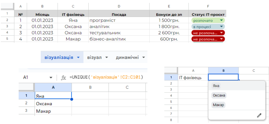 Функція UNIQUE повертає список унікальних значень у списку або діапазоні