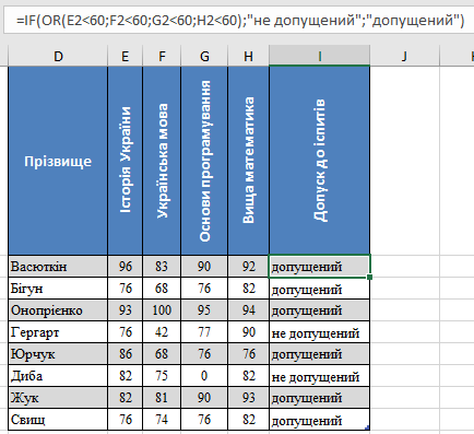 OR при застосуванні функції IF