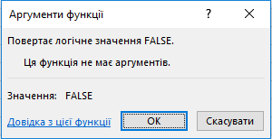 Функція FALSE в Excel повертає логічне значення FALSE, і не використовує ніяких вхідних аргументів функції.