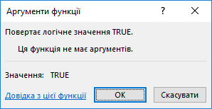Функція TRUE в Excel повертає логічне значення TRUE, і не використовує ніяких вхідних аргументів функції. Дана функція виступає оберненою до функції FALSE.