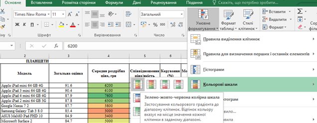 Рис. Форматування діапазонів клітинок за допомогою кольорових шкал