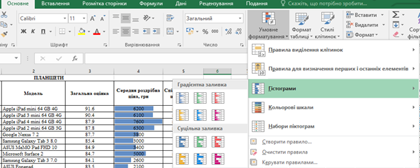 Умовне форматування - Гістограми