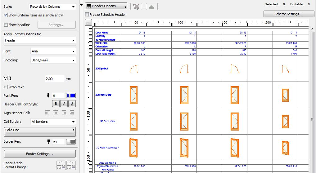 Закладка Schemes містить перелік наявних у проекті каталогів (створених, або тих, що є у програмі), закладка Criteria дозволяє обрати параметри збору елементів для представлення у каталозі (кнопки Add та Additional Parameters), а закладка Fields слугує для вибору тих параметрів, які враховуються (відображаються у лівому вікні) та установки порядку їх відображення (перетягуються у праве вікно, а характеристики, що відображаються, установлюються за допомогою спеціальних кнопок). Кнопка Create New дозволяє створити власний каталог, Import – завантажити каталоги з інших проектів, а Export – збереження настроювань каталогів для їх використання у інших проектах.