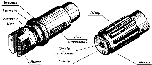 - галтель – плавний перехід від меншого перерізу вала до більшого;
