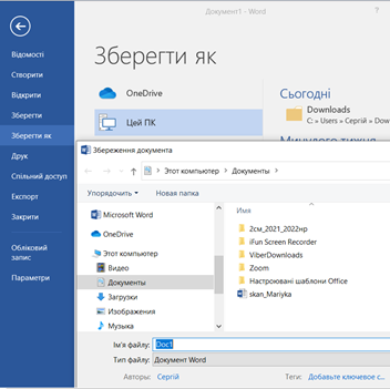 З`являється діалогове вікно, де можна задати розміщення файла, ім`я, формат збереження.