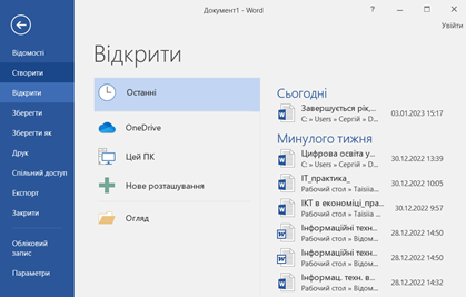 Для завантаження якогось документа під час роботи у Word необхідно виконати такі дії: