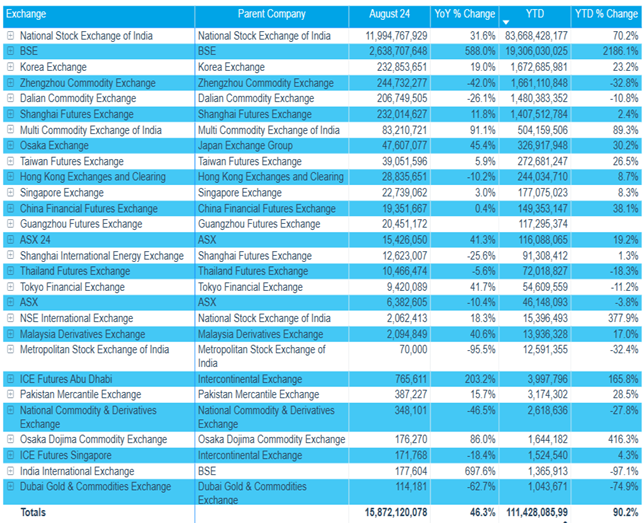 As can be seen from the table above, the Futures Industry Association includes many Asian exchanges. The first place in the list is occupied by the National Stock Exchange of India, the second is the Bombay Stock Exchange, and the third is the Korean Stock Exchange. Then there are 3 exchanges of the Chinese market [16].