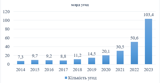Over the past three years, record figures for concluded transactions have been recorded on exchanges. At the same time, exchange trading in futures contracts is significantly lower than options trading in recent years. Thus, futures trading in 2023 amounted to 11.7 billion transactions, and options trading - 91.7 billion transactions.