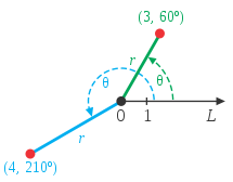 Положення точки в полярній системі задається двома числами: відстанню ρ між точкою та початком координат, і кутом φ між променем, який сполучає початок координат із точкою та обраною віссю.
